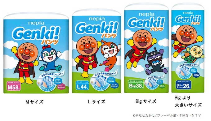 みんな大好きアンパンマン Genki ゲンキ のサイズや種類一覧まとめ ネピアの紙おむつ 子育ての知識